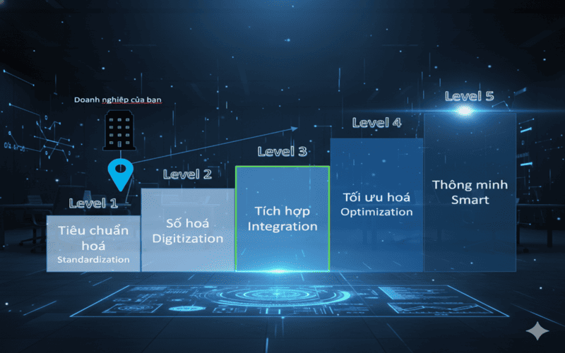 Tiếp đó là đánh giá hiện trạng về công nghệ, dữ liệu, nhân sự, quy trình để biết mình đang ở đâu và cần thay đổi điều gì.